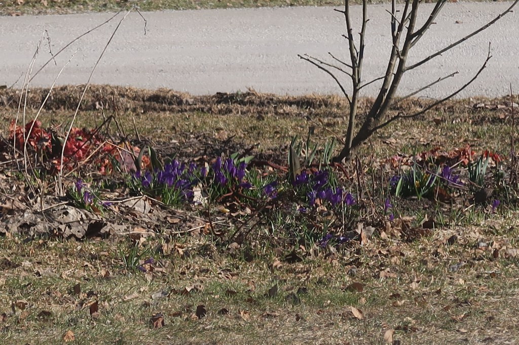 Krokuserna växer utanför mitt fönster, och sådana där röda som ser ut som höstlöv fast det börjar bli vår. Grenarna är kala men vädret pendlar mellan iskallt och t-shirtväder. Börjar hoppas på att det vänder nu. Att det blir lättare att gå utanför dörren, att inte mötas av storm. Jag har varit glad att vara tillbaka i vintern, men den börjar bli lite långt gången nu och det kan gärna få slå om till vår.